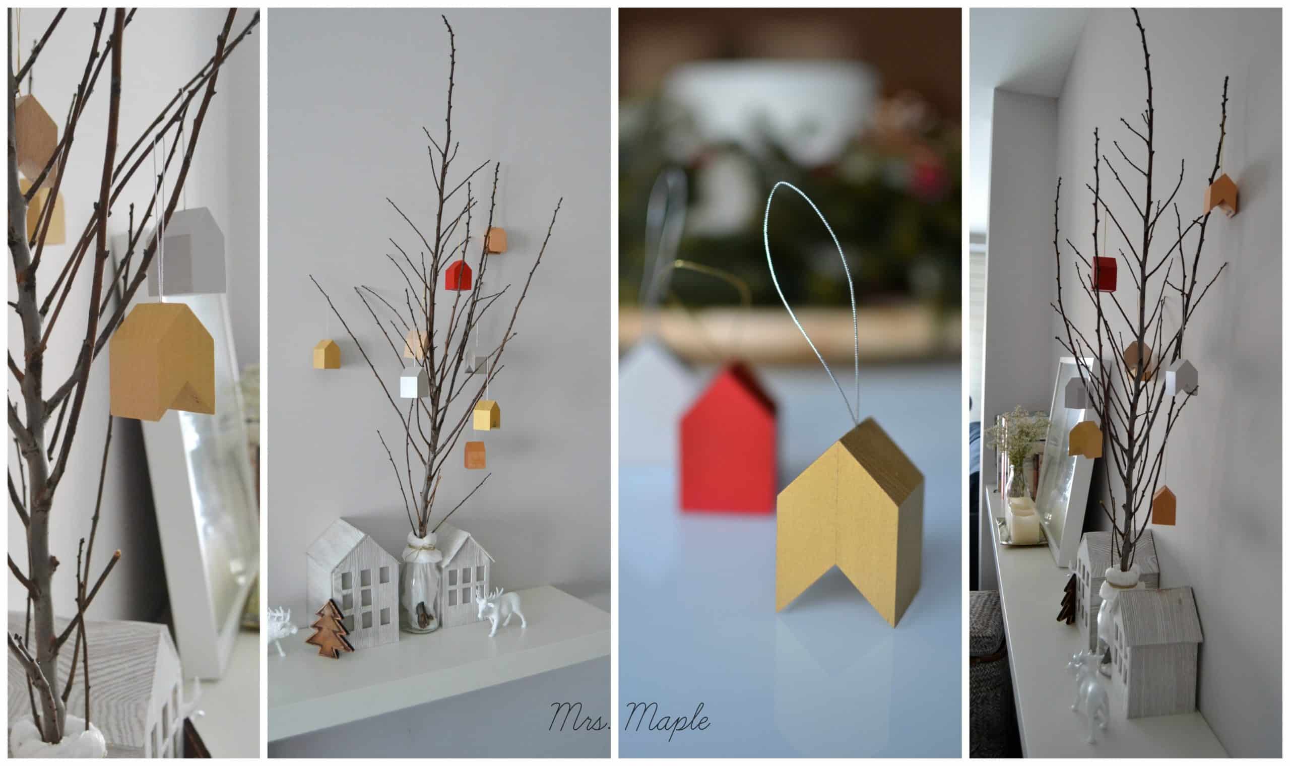 3. Un pequeño poblado invernal. Aquí es donde entran en juego mis renos. Y unas casitas de cartón pluma que llevan con nosotros un par de años. Aprovechando mi visita al popup store de julkonstruktion, me llevé unos adornos de madera tipo casas de Mad Lab, que han quedado la mar de resultones. Los renos ya les digo que más feos no podían ser. Son de plástico y eran de colores. Yo los laqué con spray blanco. Para hacer las casas si hay algún interesado me lo dejan en los comentarios y les buscaré el enlace donde las encuentran.